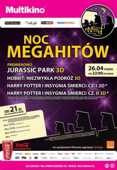 ENEMEF: Noc Megahitów to maraton, którego nie można przegapić. Zaprezentowane zostaną cztery filmy, które zebrały w kinach wielomilionową publiczność i które zdobyły rzesze fanów na całym świecie.
